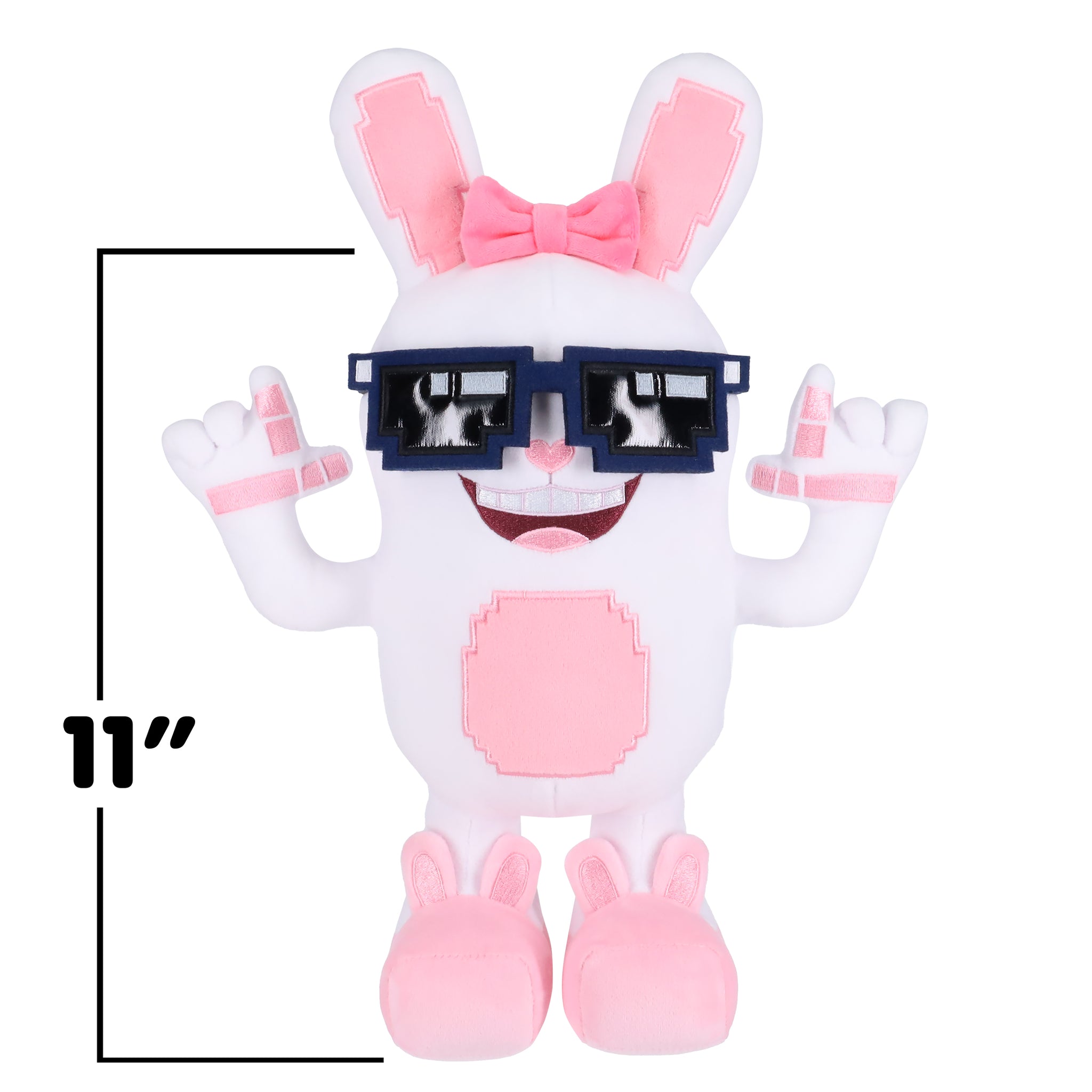 FUN PROPORTIONS: 11” plush body with 3” tall ears and removable sunglasses.